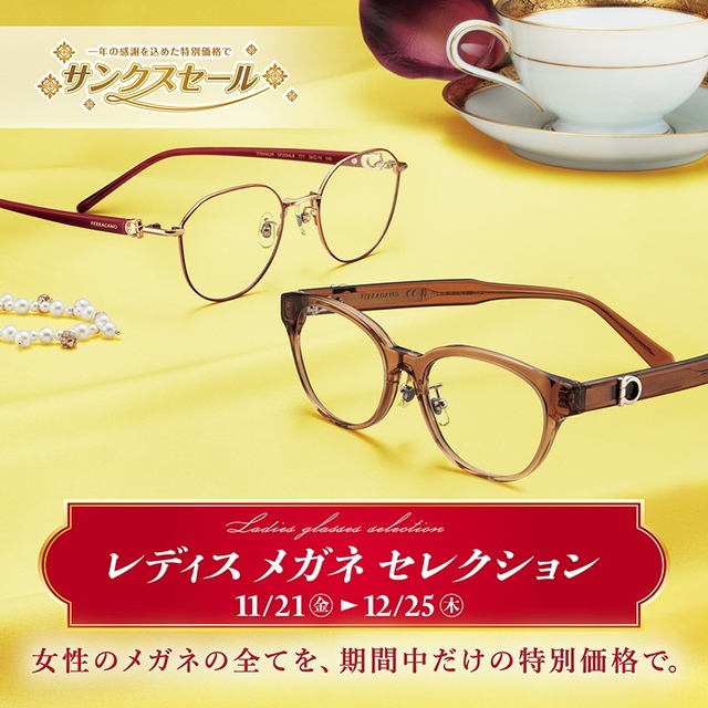 ~一年の感謝を込めた特別価格で~ 期間中だけの3つの魅力 1.女性のメガネの全てが特別価格 2.期間限定特別メガネセット 3.レンズカラーが特別価格 豊富な品揃えで皆様のご来店をお待ちしています。