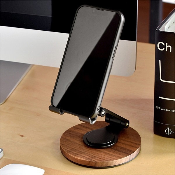 角度調整機能や360度回転機能を備えている木製スマートフォンスタンド。 「実用性」と「特別感」を兼ね備えた、贈り物にも自分用にも最適なアイテムになっています。 動画視聴やオンライン会議、レシピ確認など、さまざまなシーンで快適に使用できます。